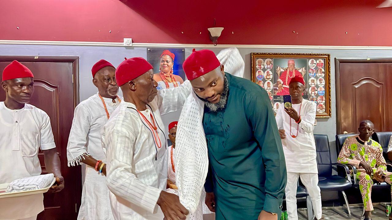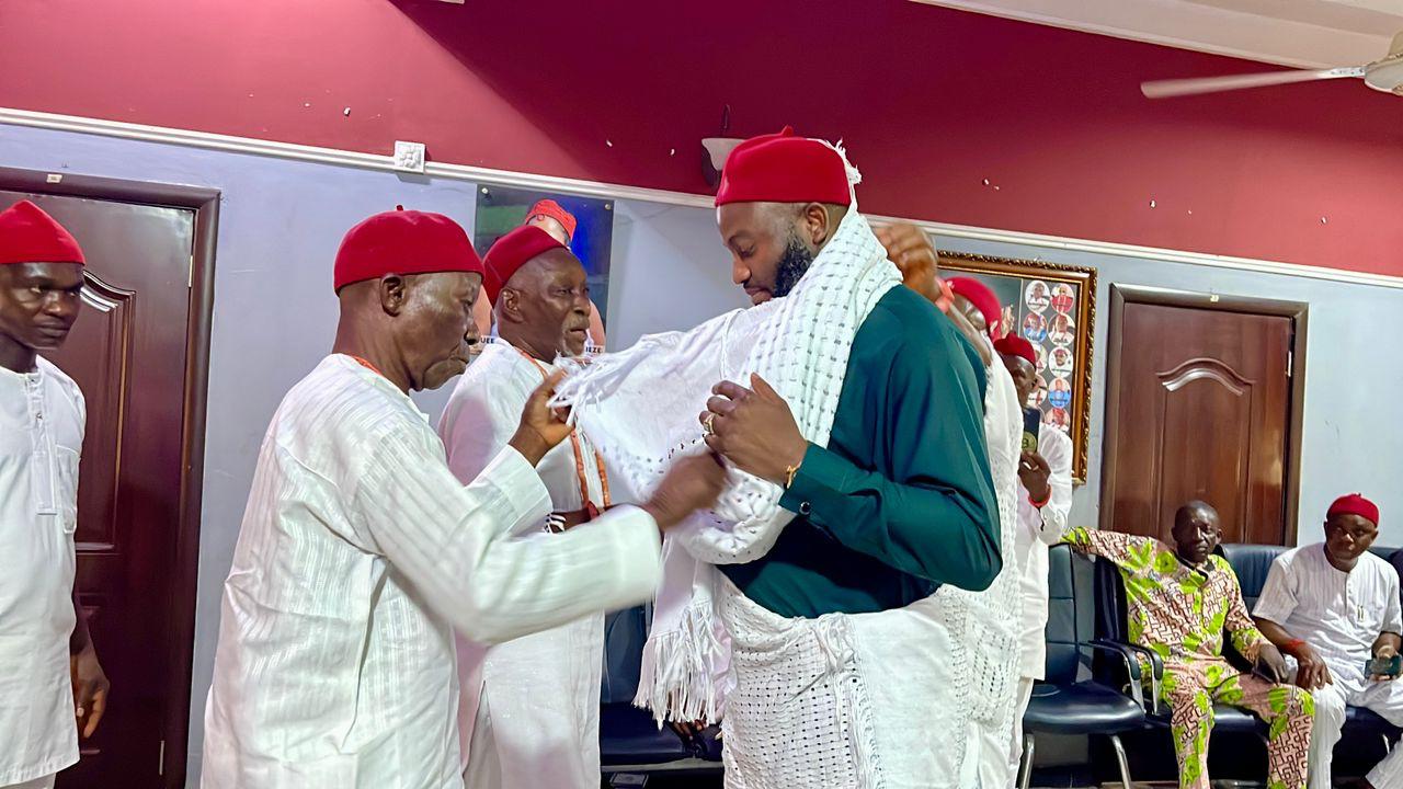 Dozy Mmobuosi honoring the Obi of Onicha-Ugbo.